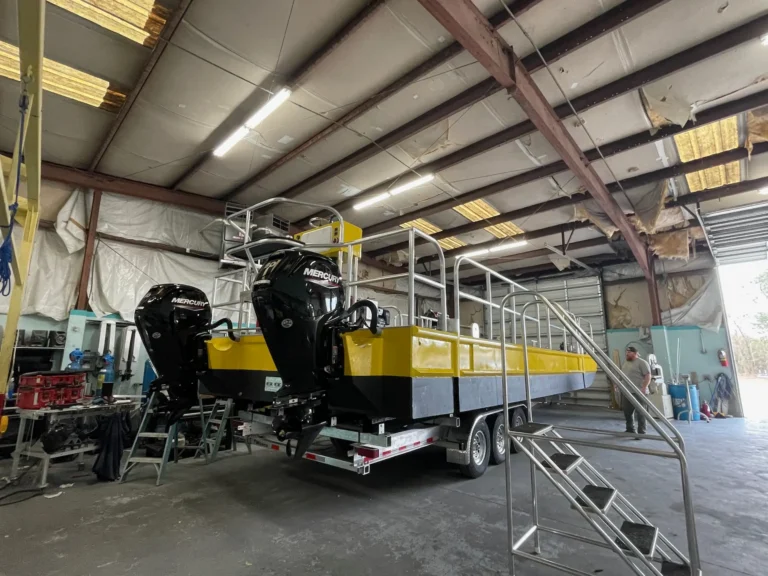 Cape Fear Catamaran’s ability to design and build any type of aluminum watercraft can meet any specific client requirements. Regardless of your individual needs, we have the ability to bring commercial concepts to durable, commercial-grade vessels that will be tough enough for even the most difficult marine environments. Our aluminum construction makes our barges trailerable and maneuverable on the job site. The barges under 30’ are able to be launched at public wildlife ramps.